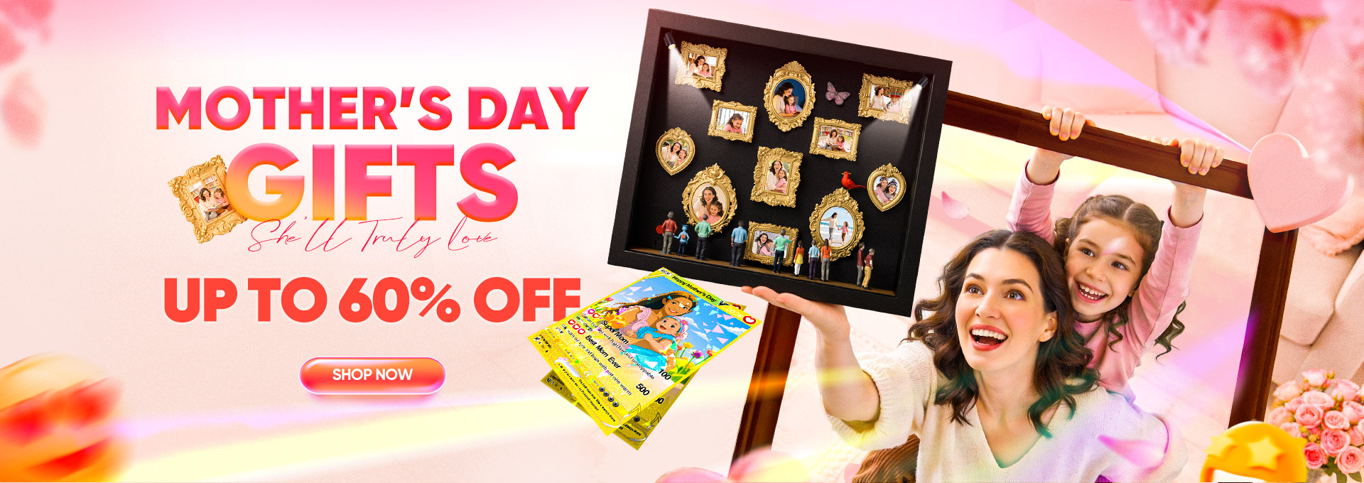 Custom Mother’s Day Photo Flower Card Personalized Text to Cartoon Portrait Gift for Mom50% OFF -