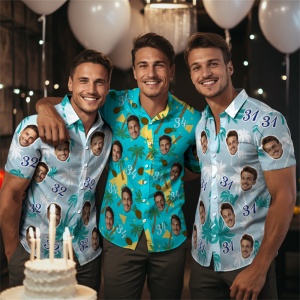 Custom Face And Number Birthday Present Hawaiian Shirts Coconut Tree Shirts Summer Day Group Gifts83% OFF -