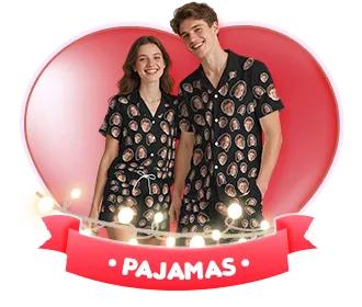 Custom Face Short Sleeve Pajamas Personalised Heart Face Couple Sleepwear Valentine Love Gifts For Her44% OFF -
