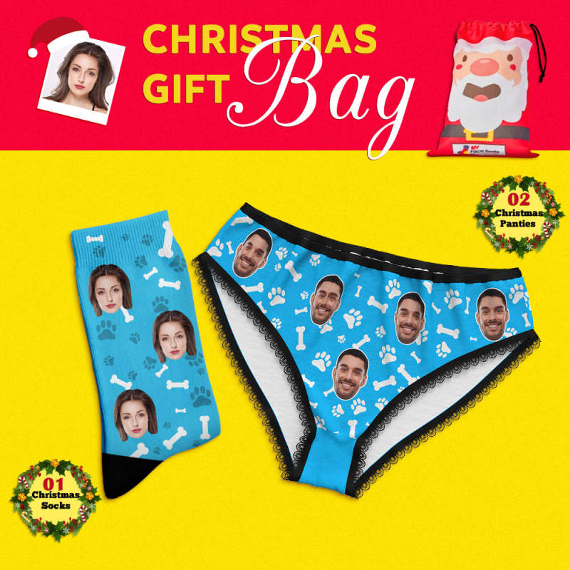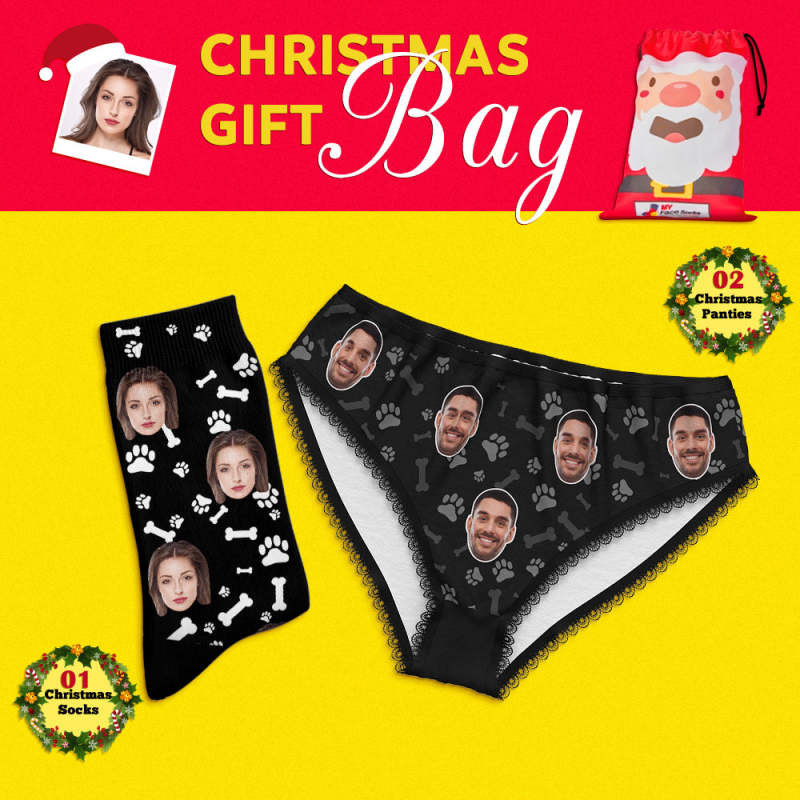 Christmas Gift Bags Custom Face Panties And Socks Set For Her