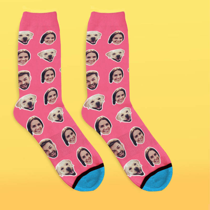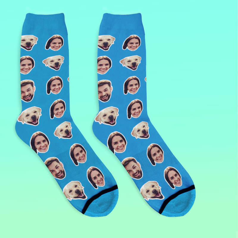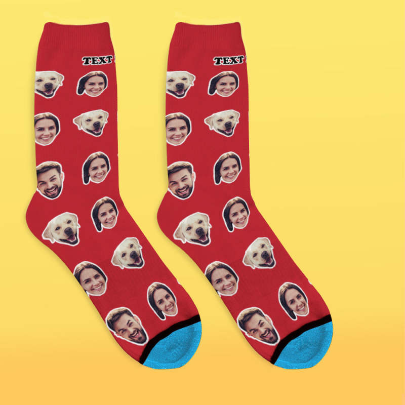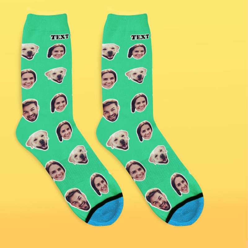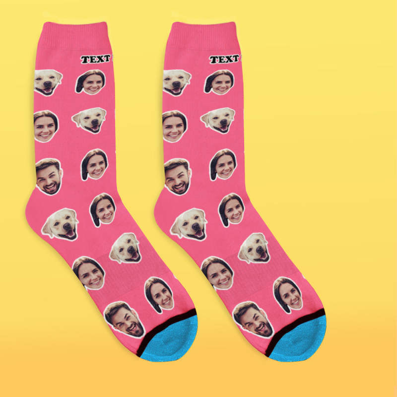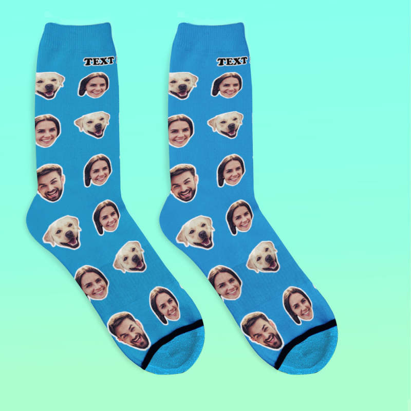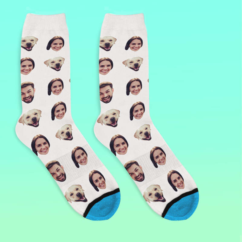 Custom 3D Digital Printed Face Socks Add Pictures and Name - Two Faces