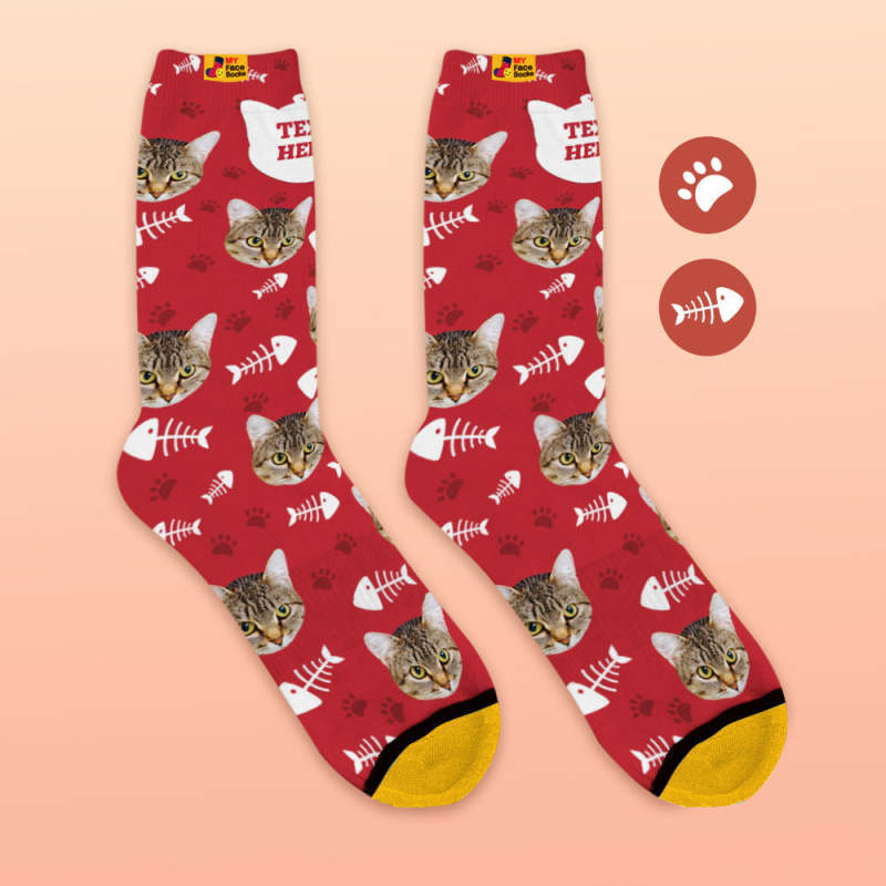 Custom 3D Digital Printed Socks My Face Socks Add Pictures and Name - Cat