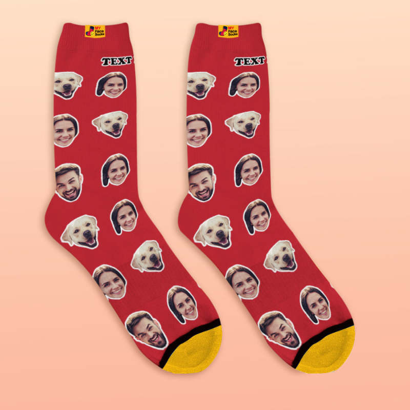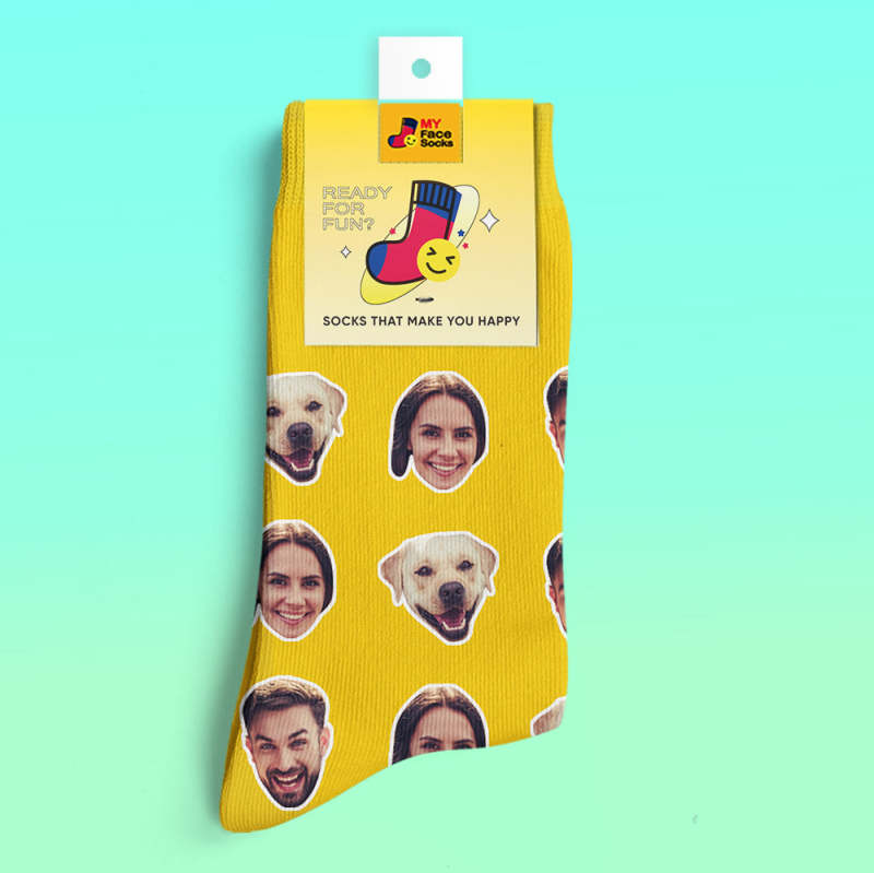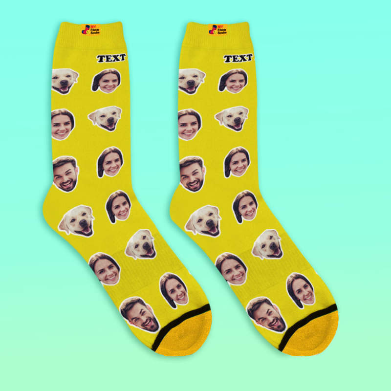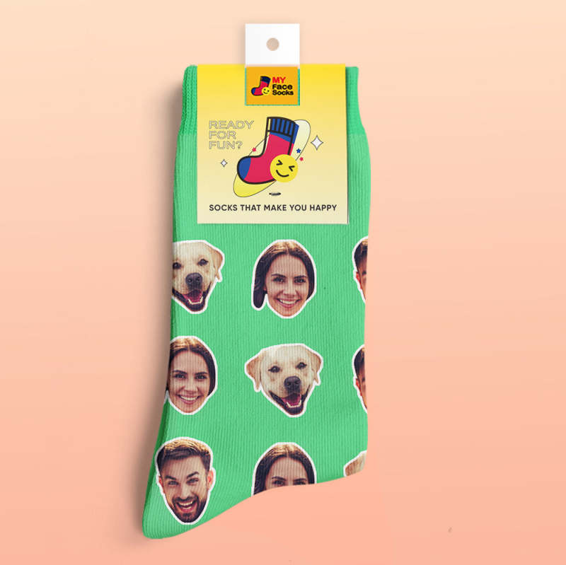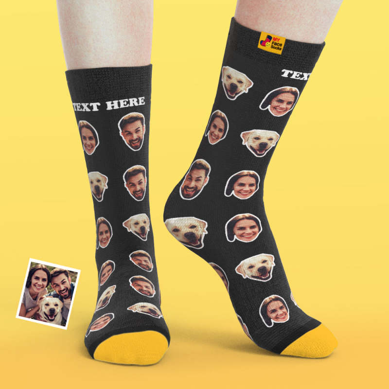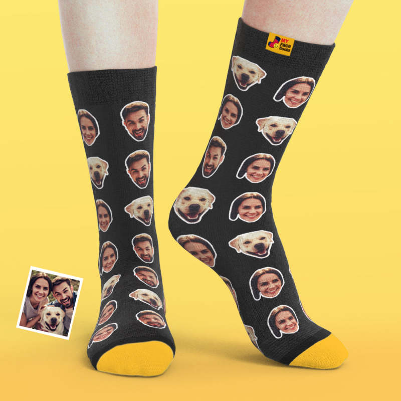 Custom 3D Digital Printed Socks My Face Socks Add Pictures and Name - Two Faces