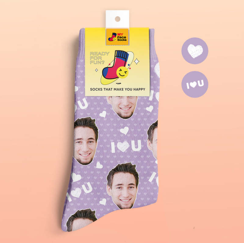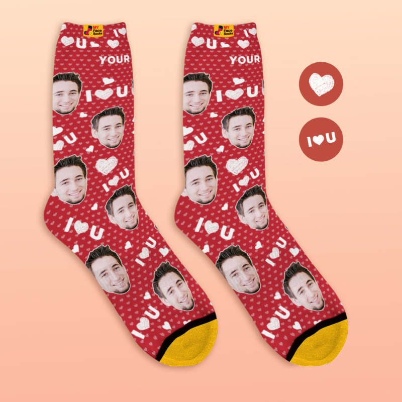 Custom 3D Preview Socks My Face Socks Add Pictures and Name - I Love You