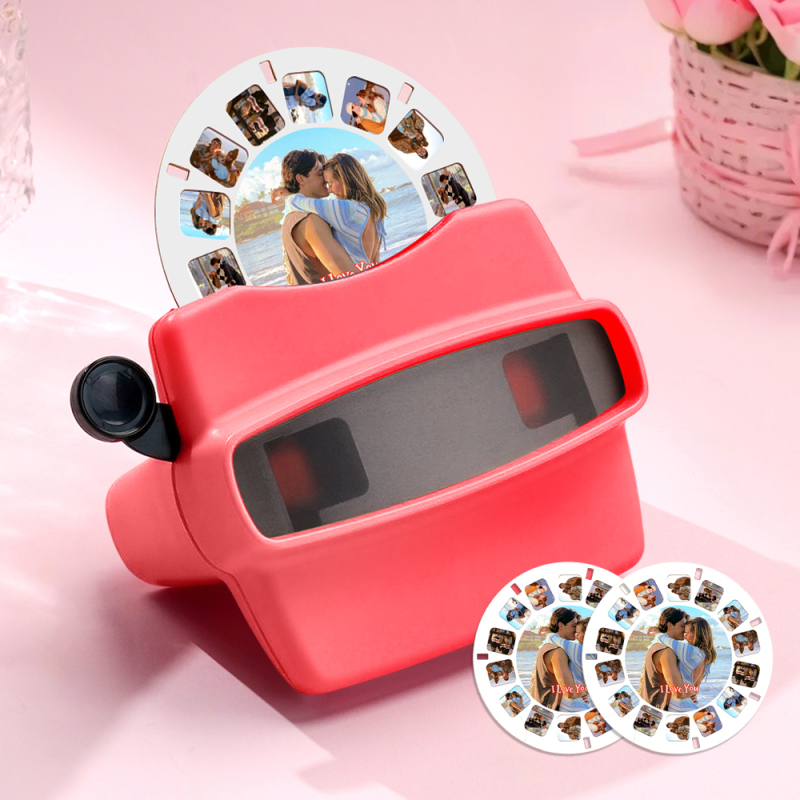 Custom 3D Viewfinder and Reel Personalized Pink Christmas Gift with Your Own Photos Text and Photo Viewer Multiple Films Available Red Viewfinder