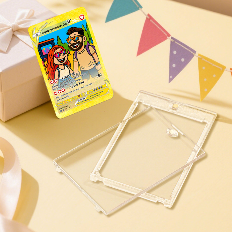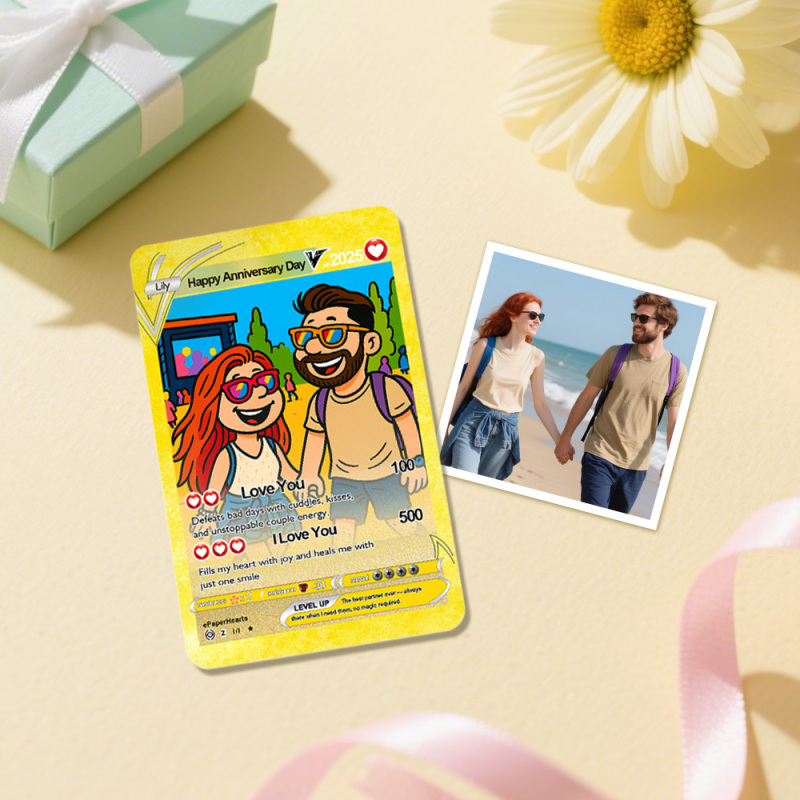 Custom Anniversary Day Poke Card Personalized Vintage Pup Style Couple Card Cute Cartoon Photo Gift for Him or Her