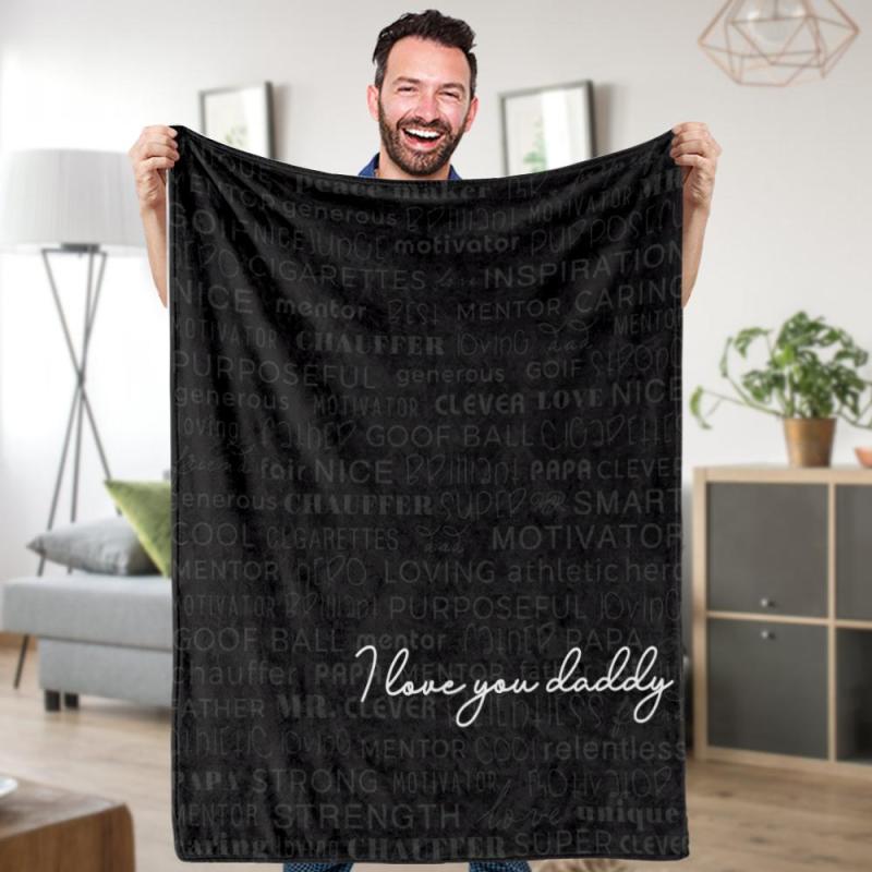 Custom Blankets Personalized Fleece Blanket With Your Text I Love Dad