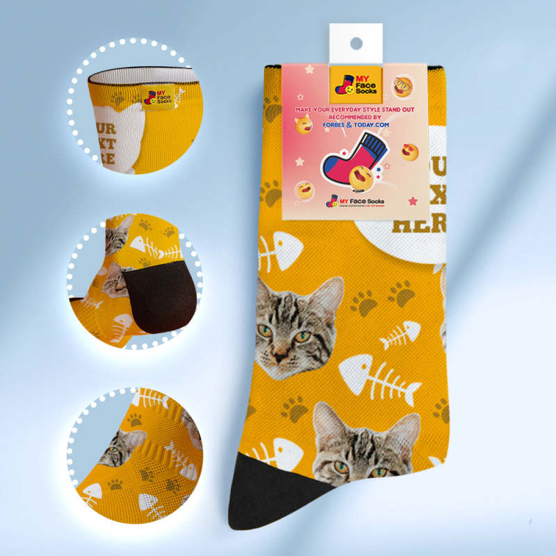 Custom Breathable Soft Socks Face Socks Add Pictures and Name - Cat - Black