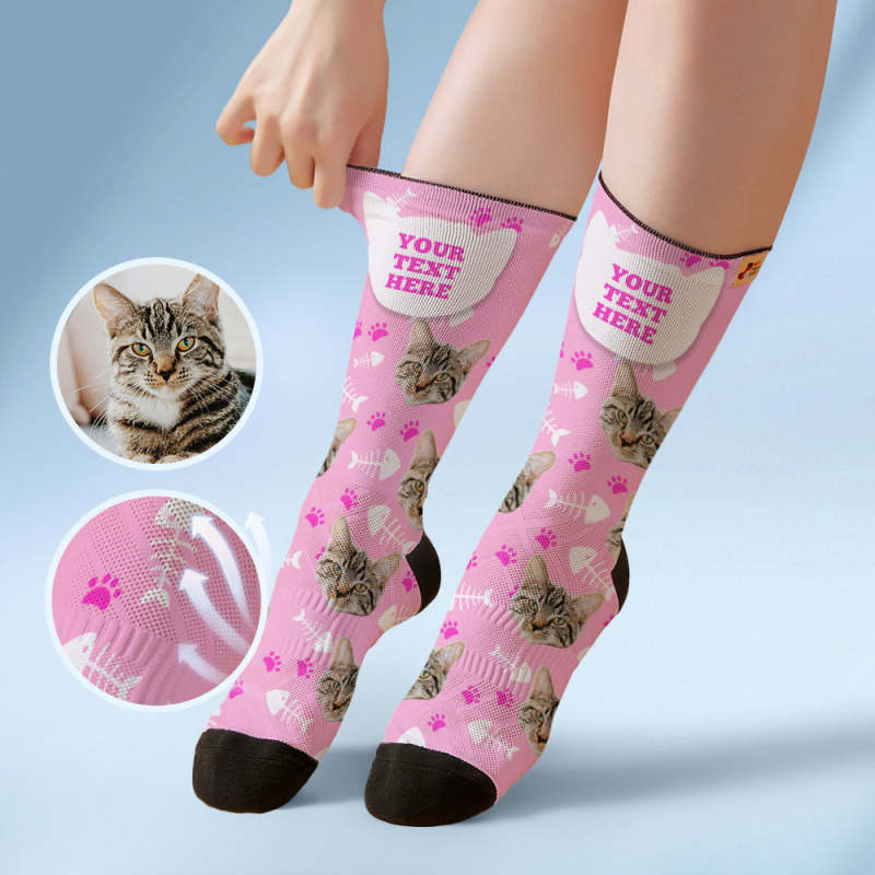 Custom Breathable Soft Socks Face Socks Add Pictures and Name - Cat - Blue