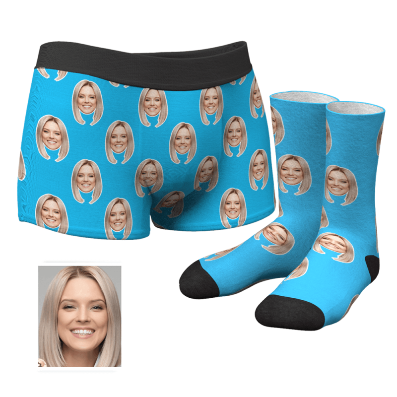 Custom Colorful Face Boxer Shorts And Socks Set