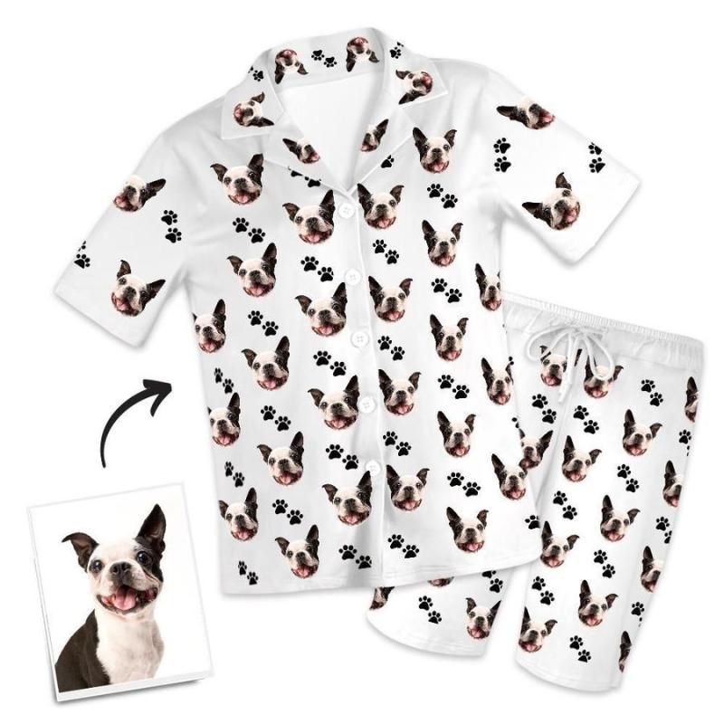 Custom Dog Photo Short Pajama Pants-Footprints