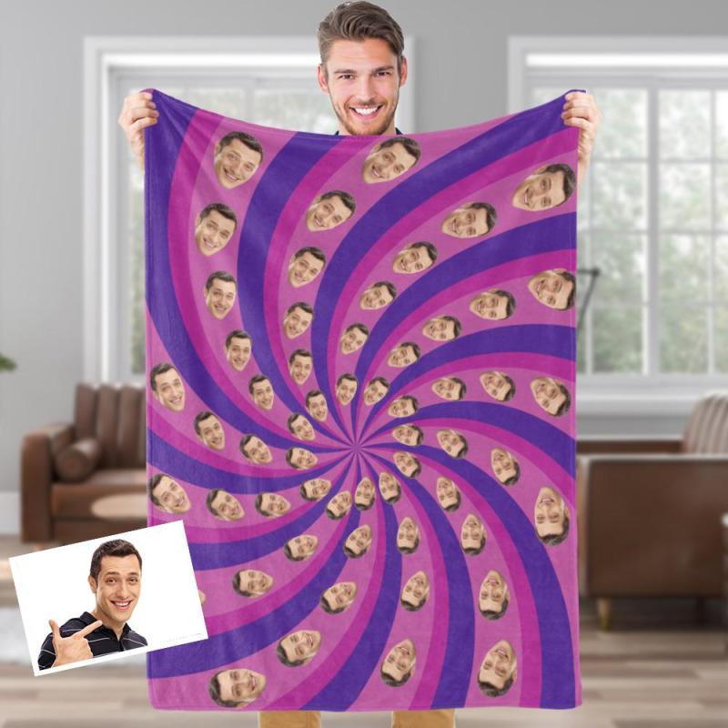 Custom Face Blankets Personalized Fleece Blanket Gifts For Family - Pink Moving Optical Illusion