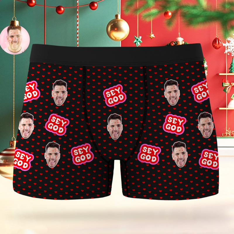 Custom Face Boxer Shorts Men's Face Underwear Funny Lovers Black Boxer Valentine's Gift