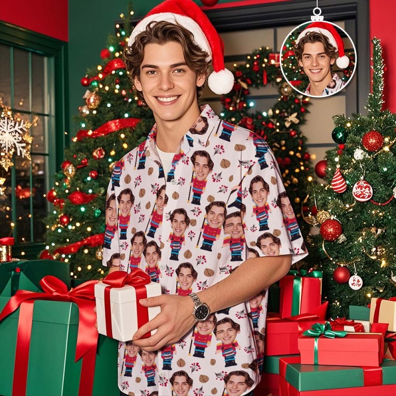 Custom Face Christmas Tree Shirt Hawaiian Shirt Xmas Top Gift for Family Friends Personalized Face Hawaiian Shirt