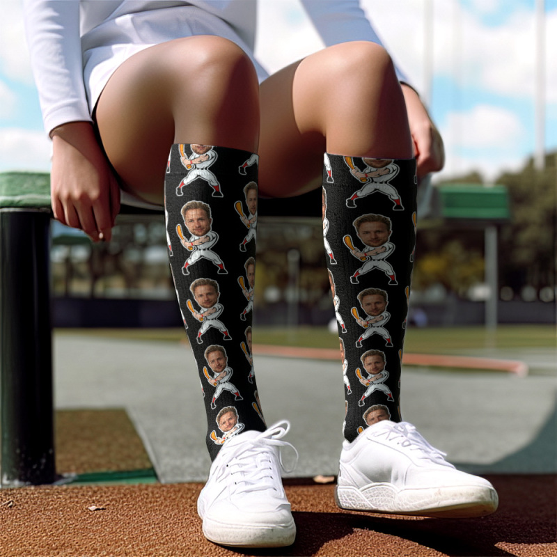 Custom Face Compression Socks Personalized Knee-High Socks Sport Theme Knee-High Socks Gift For Sportsman
