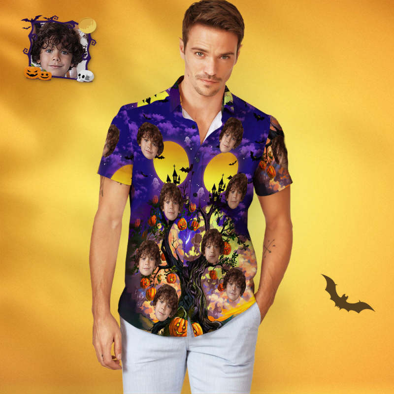 Custom Face Family Matching Aloha Set Halloween Style Personalized Matching Hawaii Tees