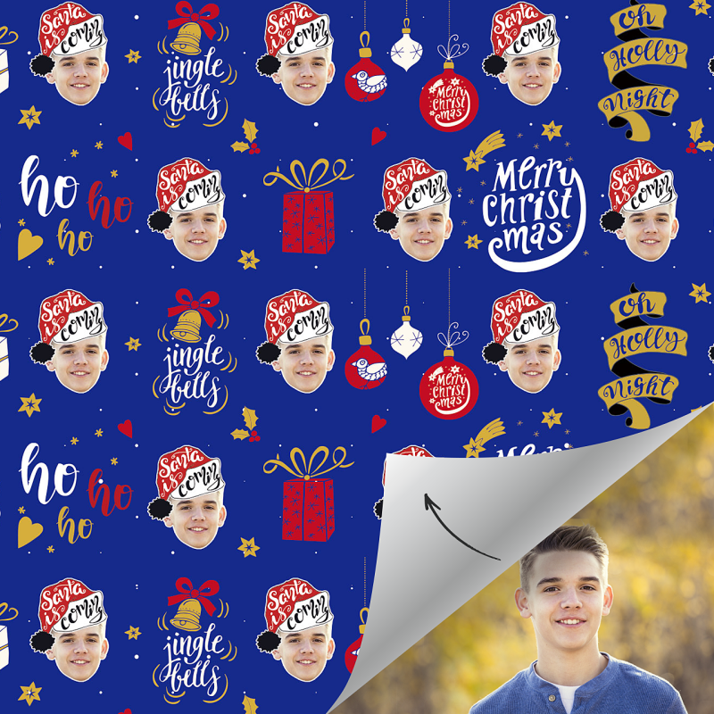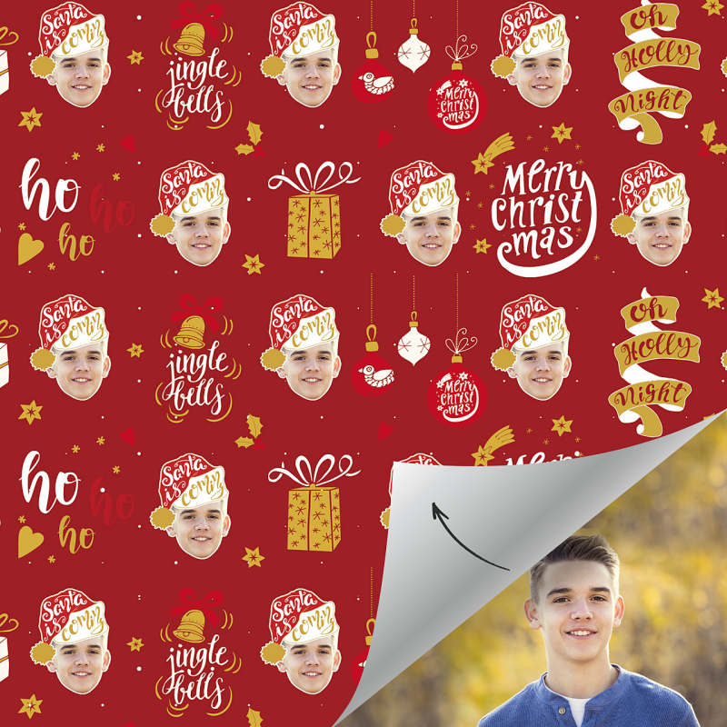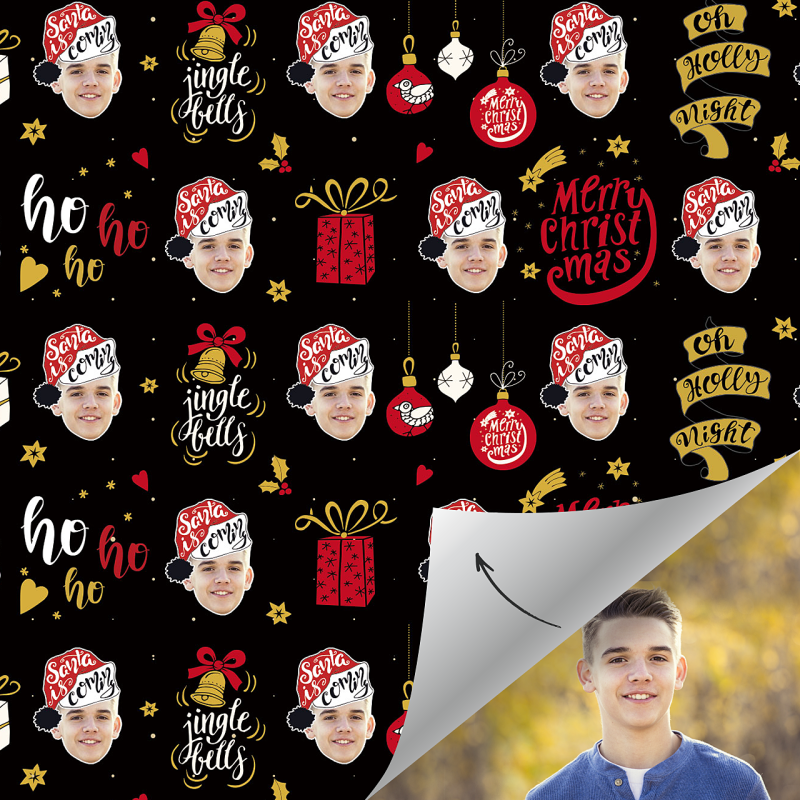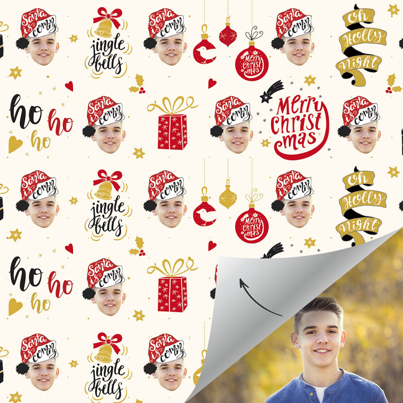 Custom Face Gift Wrap-Merry Christmas Santa Hat Boy