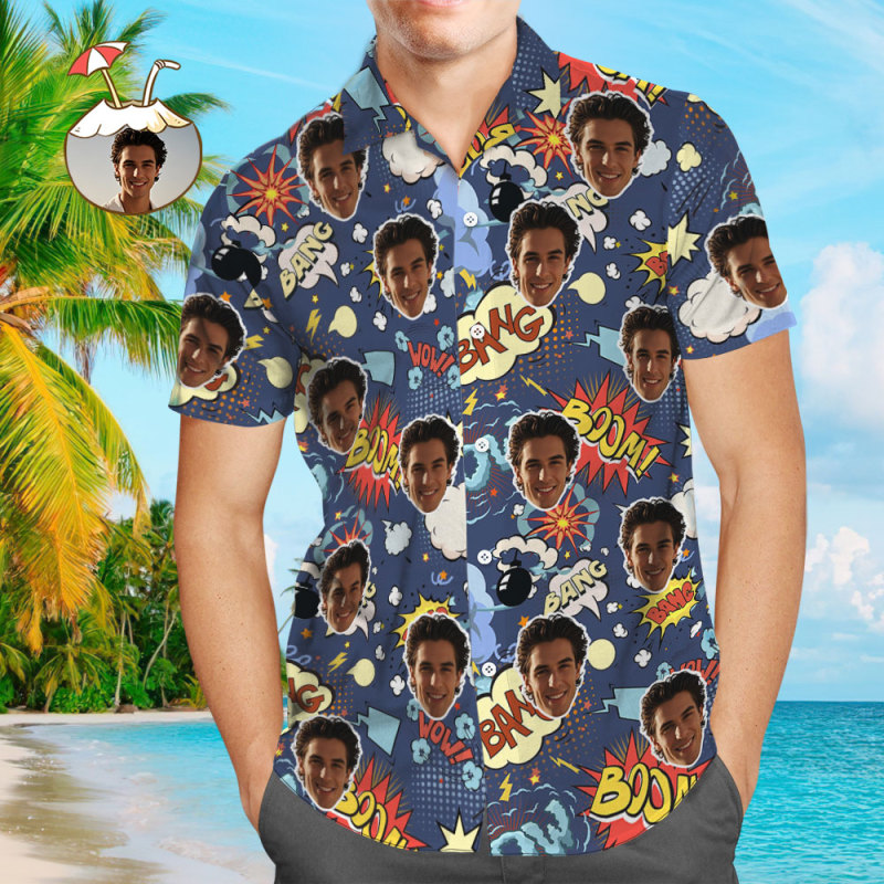 Custom Face Hawaiian Shirt Colorful Boom Funny Hawaiian Shirt