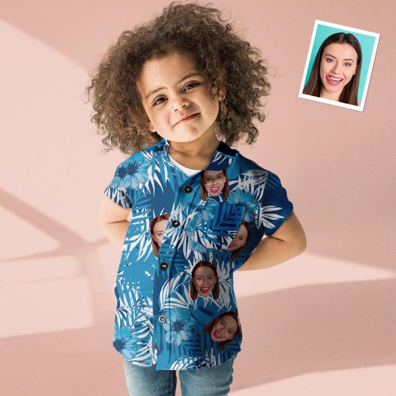 Custom Face Hawaiian Shirt Kid's All Over Print Blue Short Sleeve Shirt