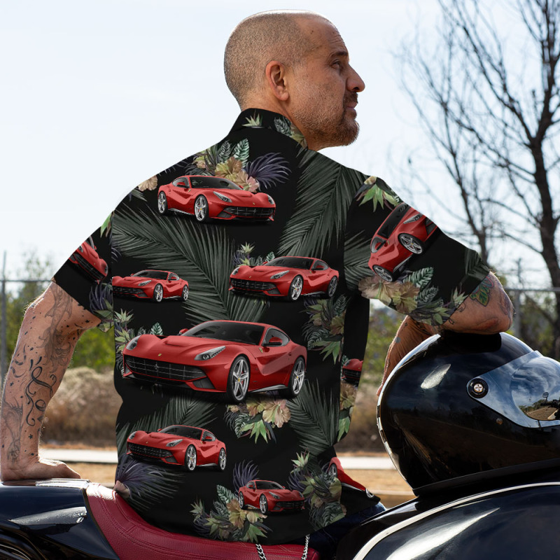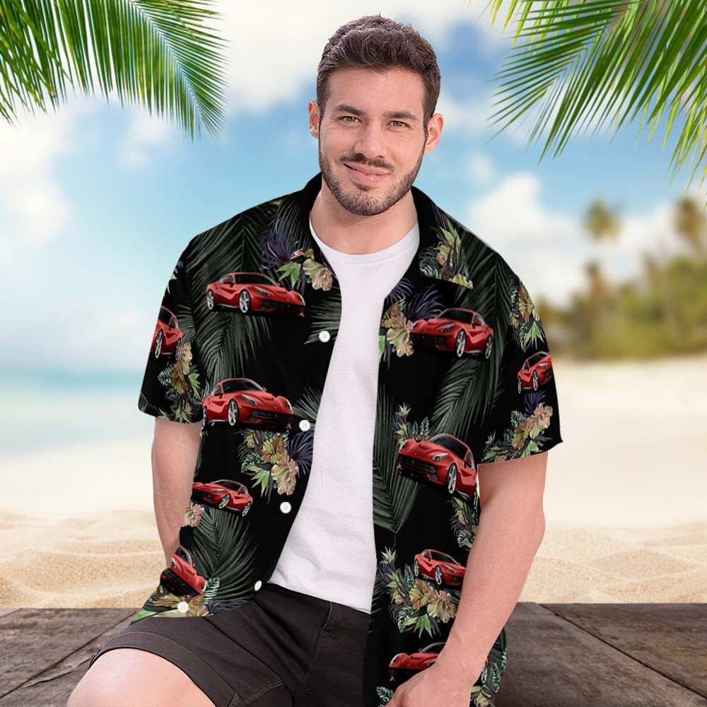 Custom Face Hawaiian Shirt Summer Black Leaves Car Lover Face Hawaiian Shirt