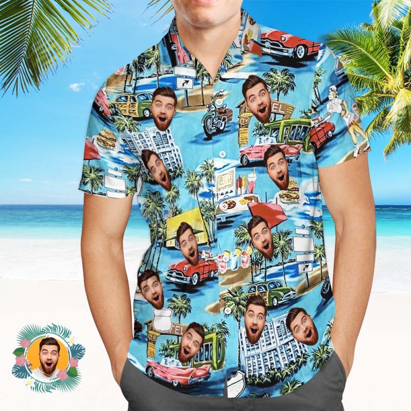 Custom Face Hawaiian Shirts Cartoon Cars and Buildings Mens Hawaiian Shirts - MyFaceSocksUK Custom Face Hawaiian Shirts Cartoon Cars and Buildings Mens Hawaiian Shirts - MyFaceSocksUK