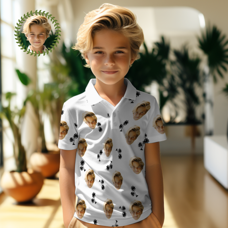 Custom Face Kids Polo Shirts Personalised Photo Shirt Coconut Trees