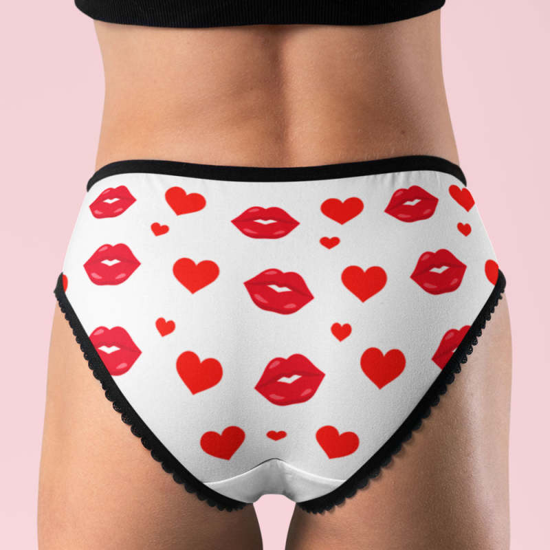 Custom Face Lips and Heart Underwear for Her AR View Personalised Thongs Valentine Gift