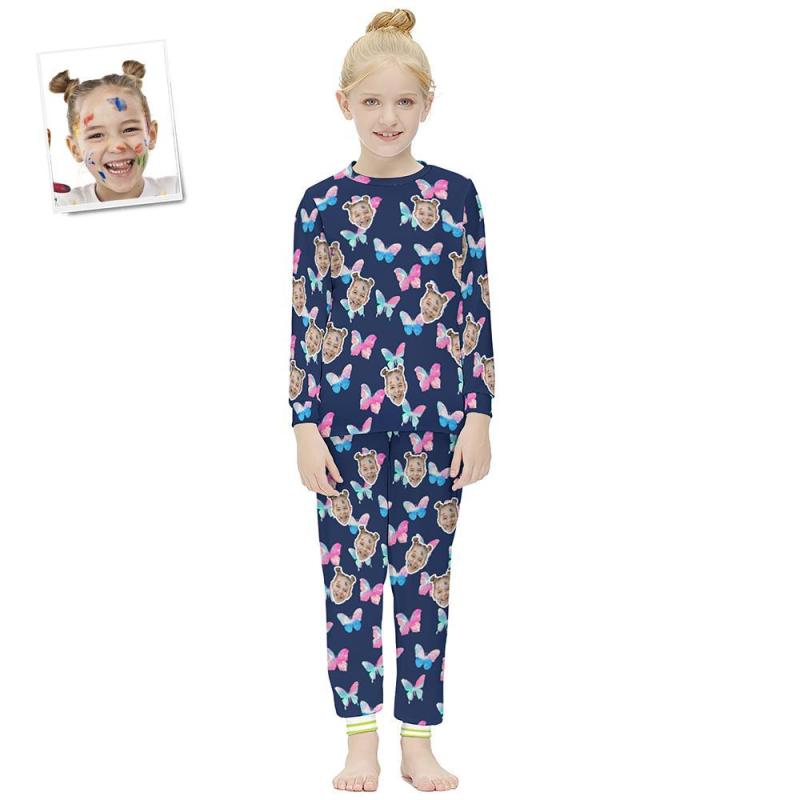 Custom Face Long Sleeve Pajamas Kids Suit - Butterfly