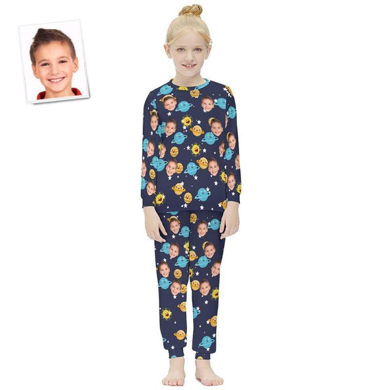 Custom Face Long Sleeve Pajamas Kids Suit - Galaxy