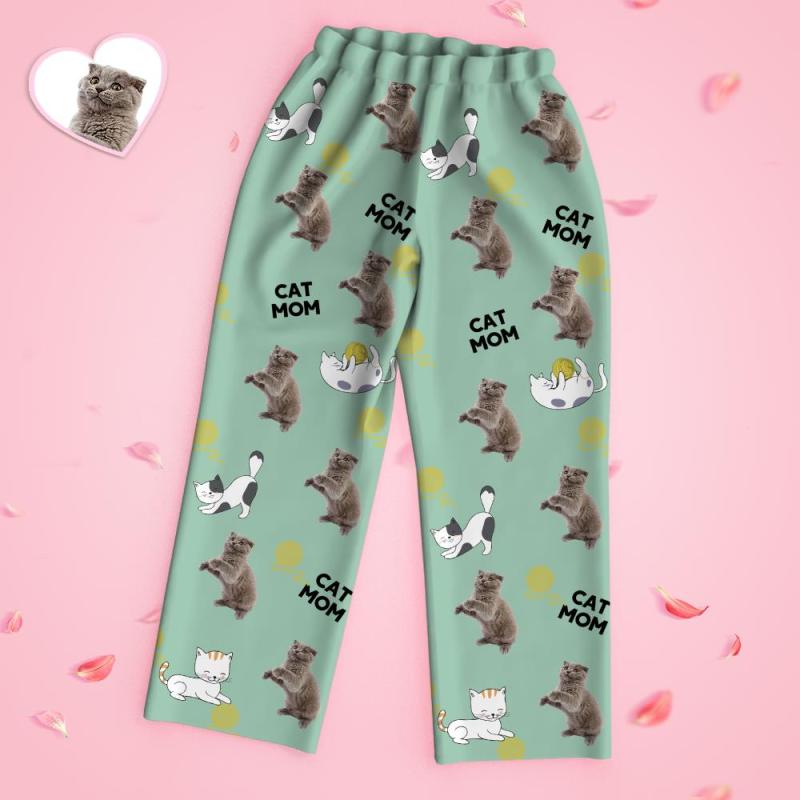 Custom Face Long Sleeve Pajamas Sleepwear Set - Cat Mom