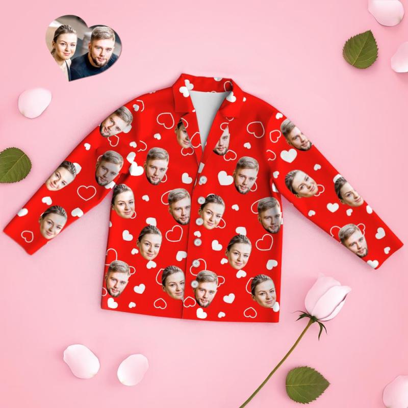 Custom Face Long Sleeve Pajamas Sleepwear Set - Red Heart
