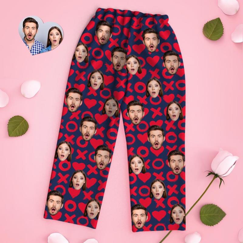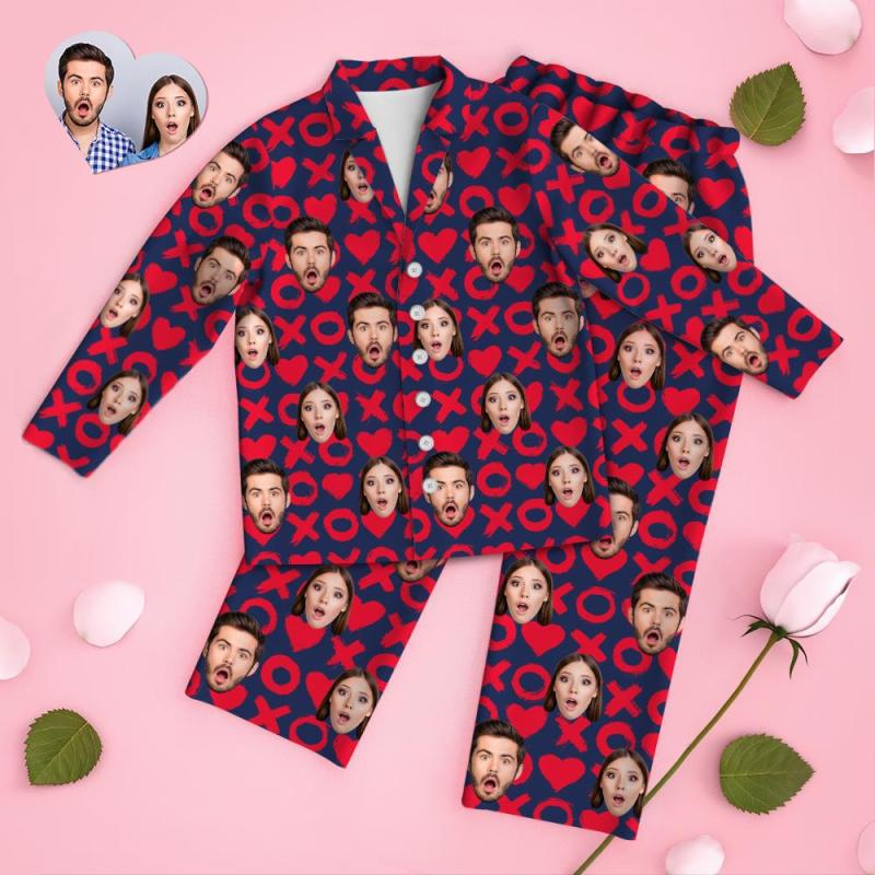 Custom Face Long Sleeve Pajamas Sleepwear Set Valentine- XO