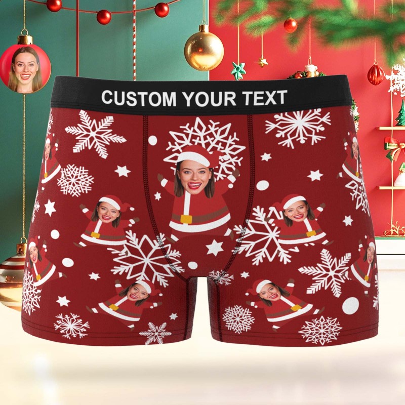 Custom Face Men's Boxer Underwear Snowflake Bells Boxer Personalized Photo Funny Men's Boxer Briefs Christmas Gift