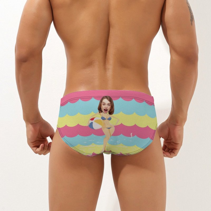 Custom Face Men's Swimming Trunks Personalised Beach Surfing Triangle Swim Briefs