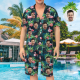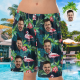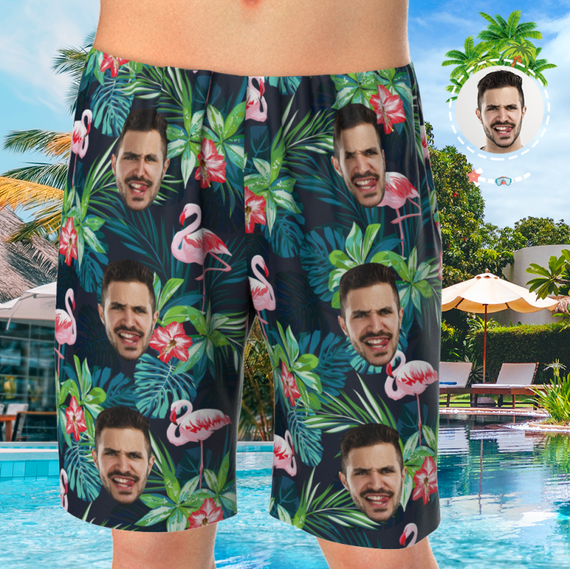 Custom Face On Pajamas Set, Short Sleeve Sleepwear, Button-Down Nightwear - Leaves & Flamingo