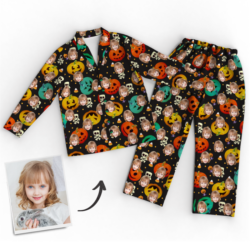 Custom Face Pumpkin Skeleton Pajamas Halloween For Children