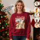 Custom Face Round Neck Hoodie Custom Your Pet Retro Vintage Portrait Green Christmas Sweatshirt