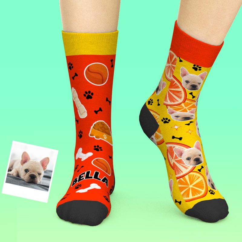 Custom Face Socks Add Pictures And Name Dog Bone Socks