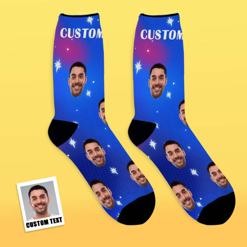 Custom Face Socks Add Pictures and Name Star Breathable Soft Socks