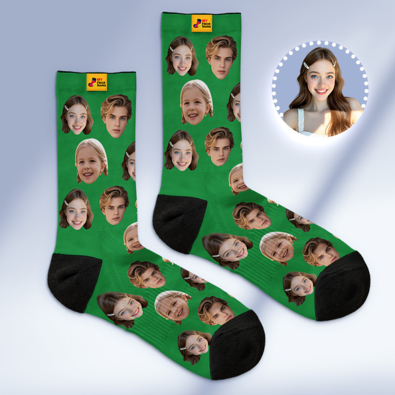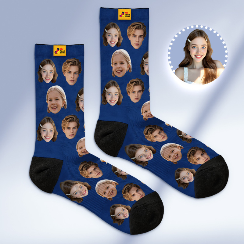 Custom Face Socks Personalized Socks with Faces Photo Dark Blue Funny Gift Photo Family Socks