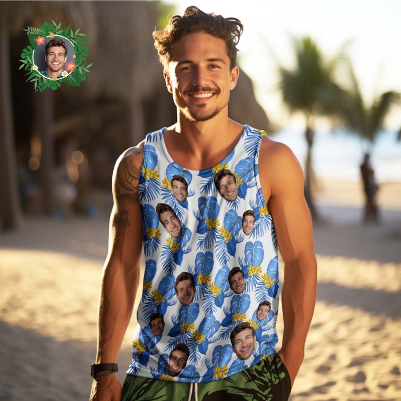Custom Face Tank Tops Hawaiian Tropical Style Casual Tank Top Blue Flower