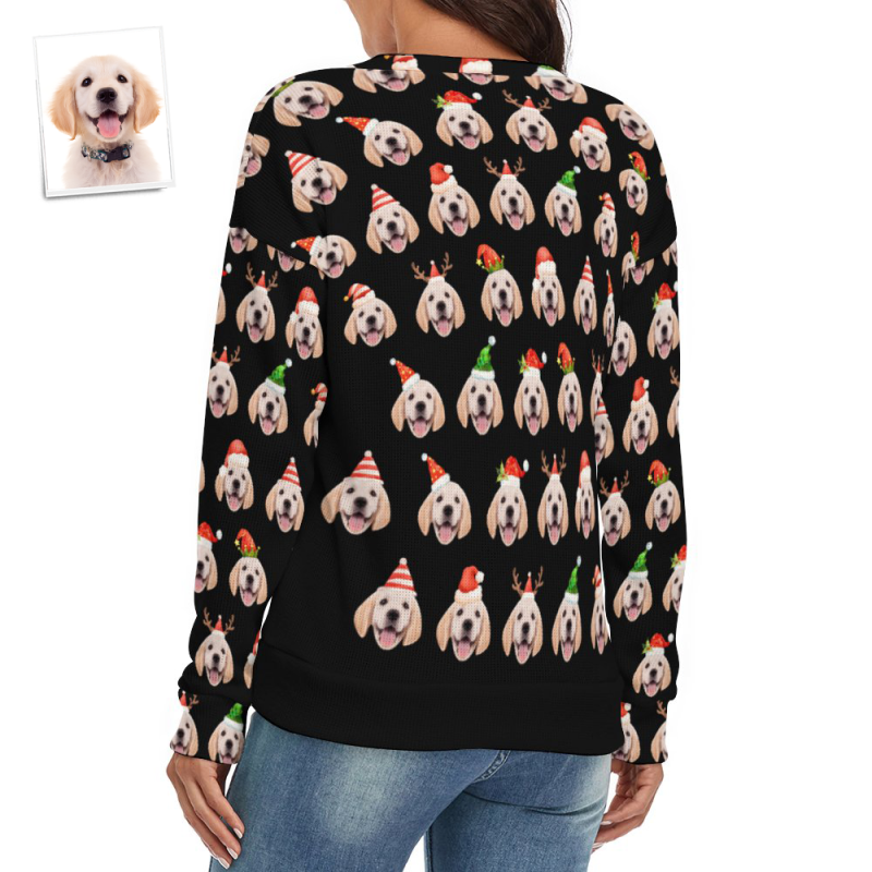 Custom Face Women V-Neck Christmas Pet Theme Sweater Spandex Comfortable