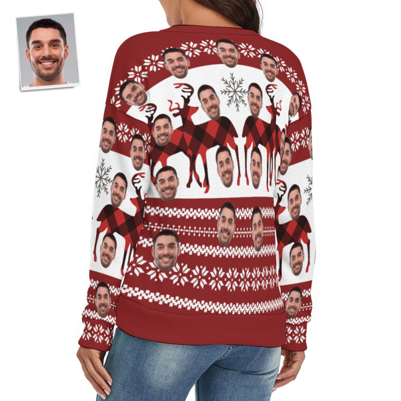 Custom Face Women V-Neck Christmas Sweater Christmas Elk Spandex Comfortable