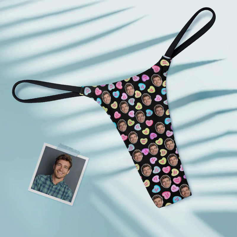 Custom Face Women's Tanga Thong Colorful Hearts
