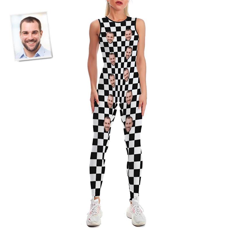 Custom Face Women's Yoga Jumpsuit Stretch Yoga Gym Fitness Dancing Costume - 3d Grid