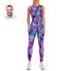 Custom Face Women's Yoga Jumpsuit Stretch Yoga Gym Fitness Dancing Costume - Blue Tie-dye