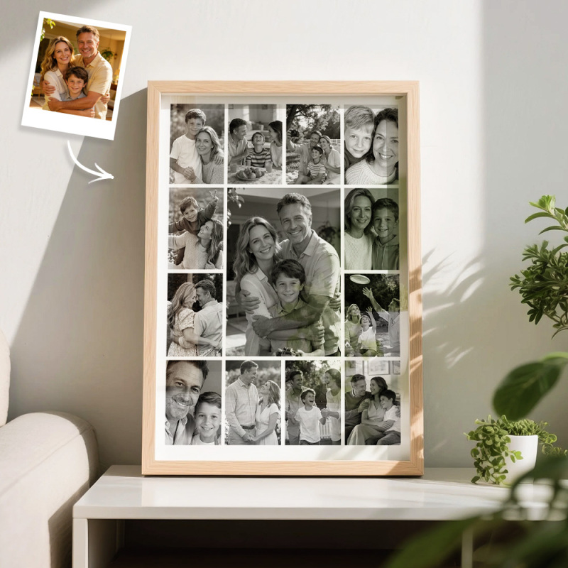 Custom Family Photo Collage Frame Black & White / Full Color Options Multi-Picture Wall Art Gift