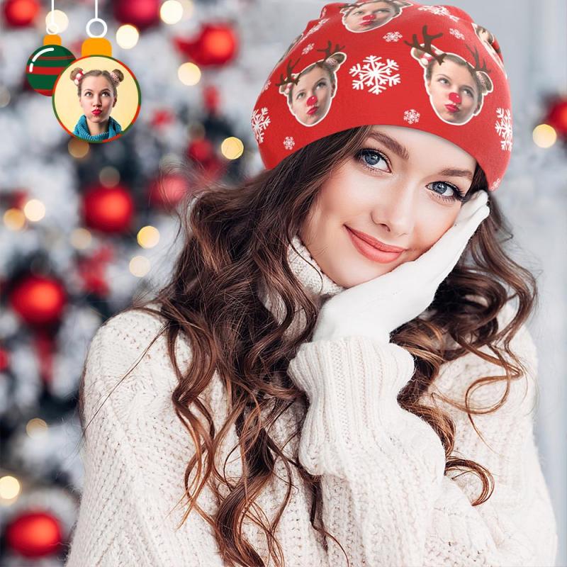 Custom Full Print Pullover Cap Personalized Photo Beanie Hats Christmas Gift for Him - Elk