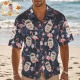 Custom Hawaiian Shirt Flower Flamingo Photo Hawaiian Shirt Dark Blue Funny Vacation Party Shirts