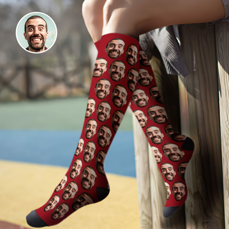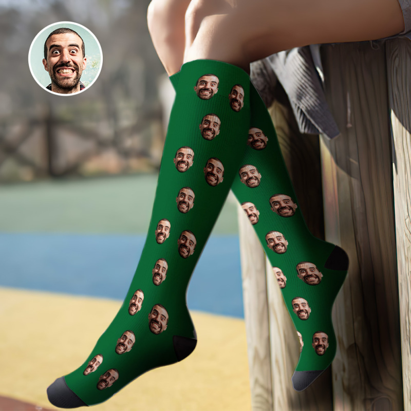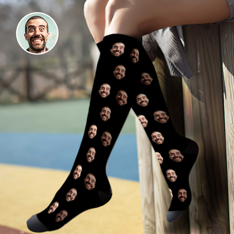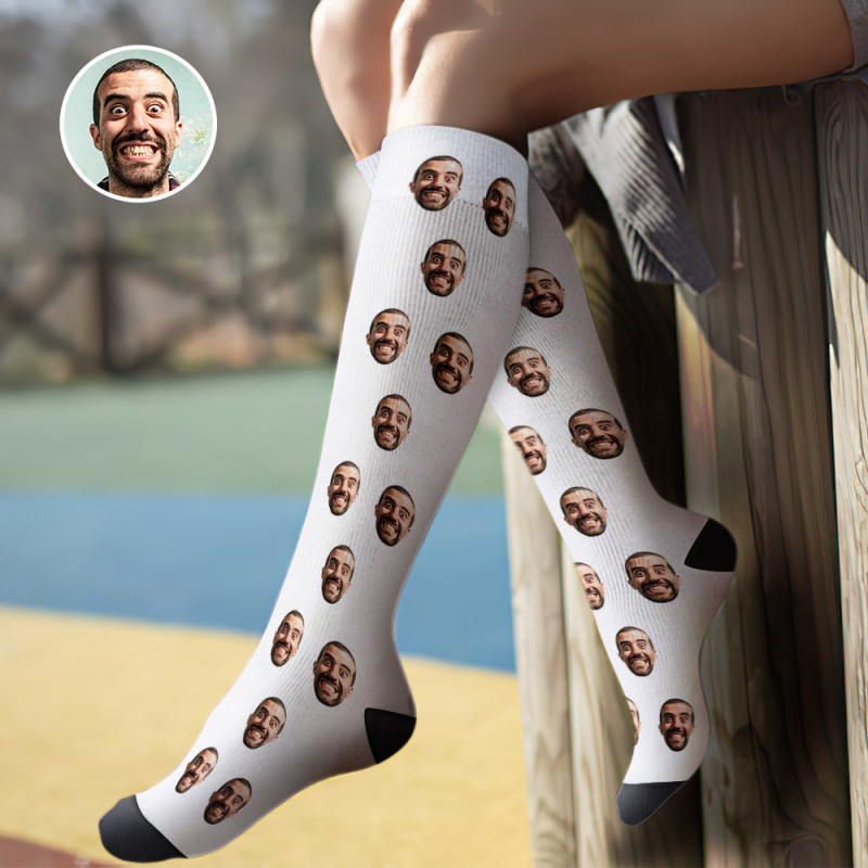 Custom Knee High Face Socks Summer Socks - Full Face Blue